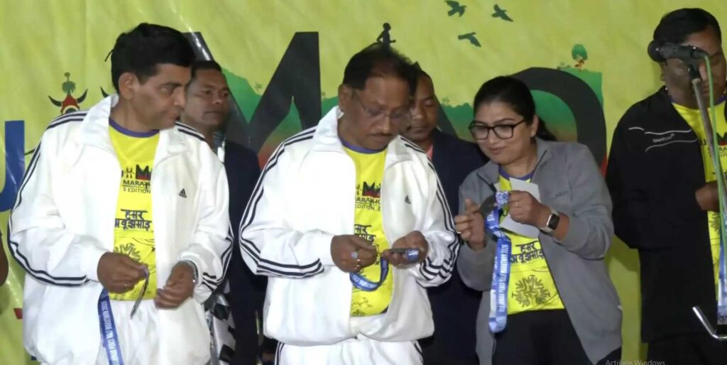 Chhattisgarh News/नारायणपुर। CM विष्णुदेव साय आज सुबह अबूझमाड़ पीस मैराथन फ्लैग ऑफ कार्यक्रम में शामिल हुए।