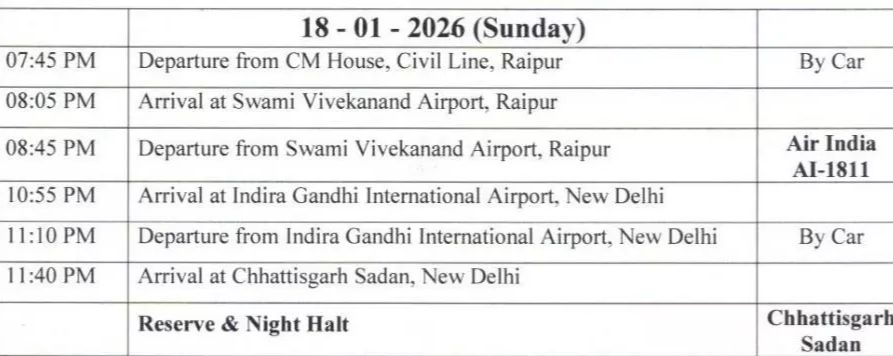 Chhattisgarh News/रायपुर। CM विष्णुदेव साय आज रात दिल्ली के लिए रवाना होंगे। रात्रि विश्राम छत्तीसगढ़ सदन में करेंगे। जानकारी के मुताबिक CM विष्णुदेव साय 19 को बीजेपी के वरिष्ठ नेताओं और केंद्रीय मंत्रियों से मुलाकात कर सकते है। फ़िलहाल इन सभी से मुलाकात को लेकर आधिकारिक पुष्टि नहीं है। दिल्ली दौरे के चलते ऐसे कयास लगाए जा रहे है।