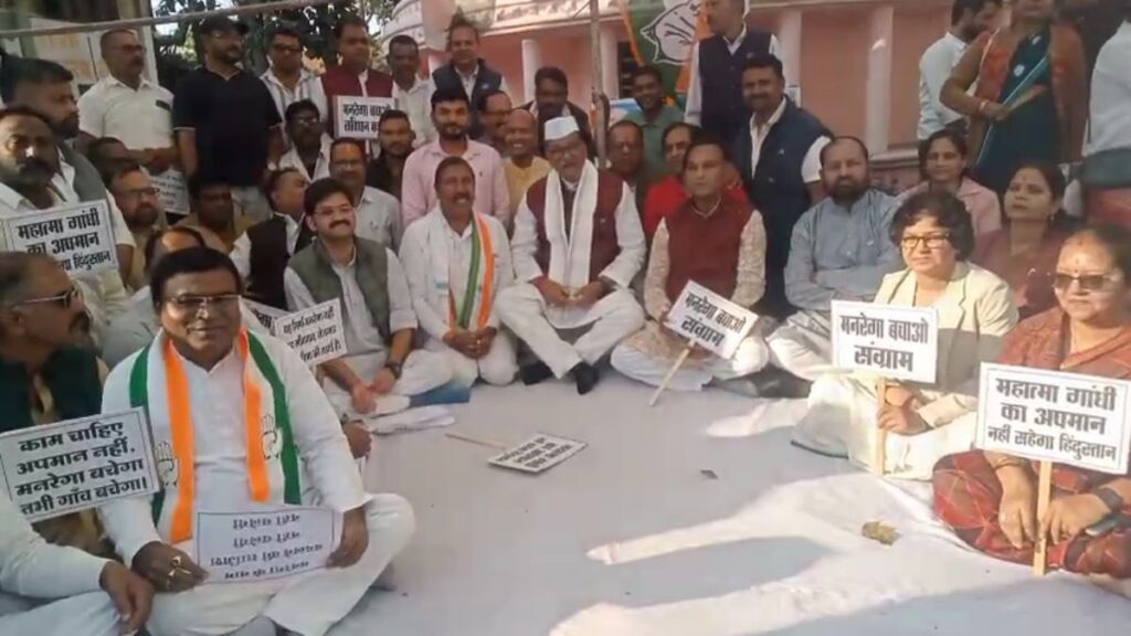 Chhattisgarh News/जांजगीर-चांपा। केंद्र सरकार द्वारा मनरेगा योजना का नाम बदलने के फैसले के खिलाफ कांग्रेस ने मोर्चा खोल दिया है। AICC के निर्देश पर आज प्रदेशभर में कांग्रेस कार्यकर्ताओं ने एकदिवसीय उपवास रखकर विरोध प्रदर्शन किया। इसी कड़ी में जांजगीर जिले में अंबेडकर प्रतिमा के पास धरना दिया गया, जहां इस आंदोलन की अगुवाई छत्तीसगढ़ विधानसभा के नेता प्रतिपक्ष चरणदास महंत ने की। इस दौरान कांग्रेसियों ने भाजपा सरकार पर महात्मा गांधी की विरासत को मिटाने का आरोप लगाया।