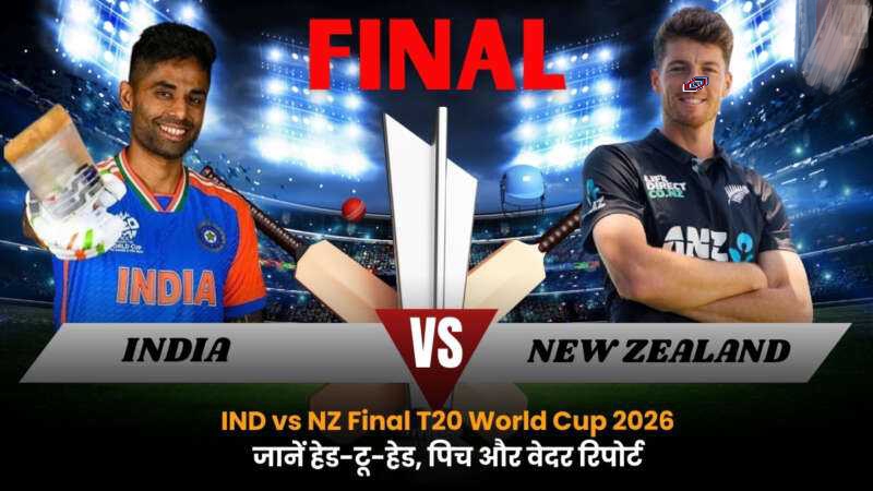 IND vs NZ Final 2026 Match Pitch Report, Weather Forecast:टी20 वर्ल्ड कप 2026 के सेमीफाइनल में इंग्लैंड के खिलाफ 7 रन से जीत के बाद भारत फाइनल में नरेंद्र मोदी स्टेडियम में न्यूजीलैंड से भिड़ेगा। मेन इन ब्लू को इस मैदान पर दो बार झटका लगा है। 2023 में शानदार प्रदर्शन के बाद भारतीय टीम को वर्ल्ड कप फाइनल में दिल तोड़ने वाली हार का सामना करना पड़ा था। टी20 वर्ल्ड कप 2026 में कुछ हफ्ते पहले भारतीय टीम सुपर 8 में साउथ अफ्रीका से भारी हार के बाद बाहर होने की कगार पर थी।