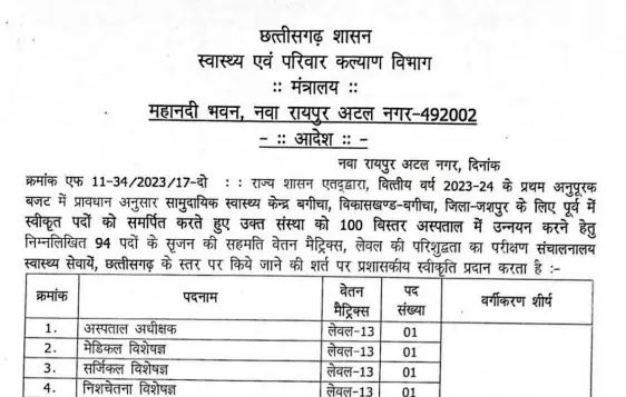 दरअसल, मुख्य चिकित्सा एवं स्वास्थ्य अधिकारी जशपुर ने स्पष्ट किया है कि वर्ष 2022 में स्वीकृति केवल 30 बिस्तरीय भवन निर्माण तक सीमित थी।