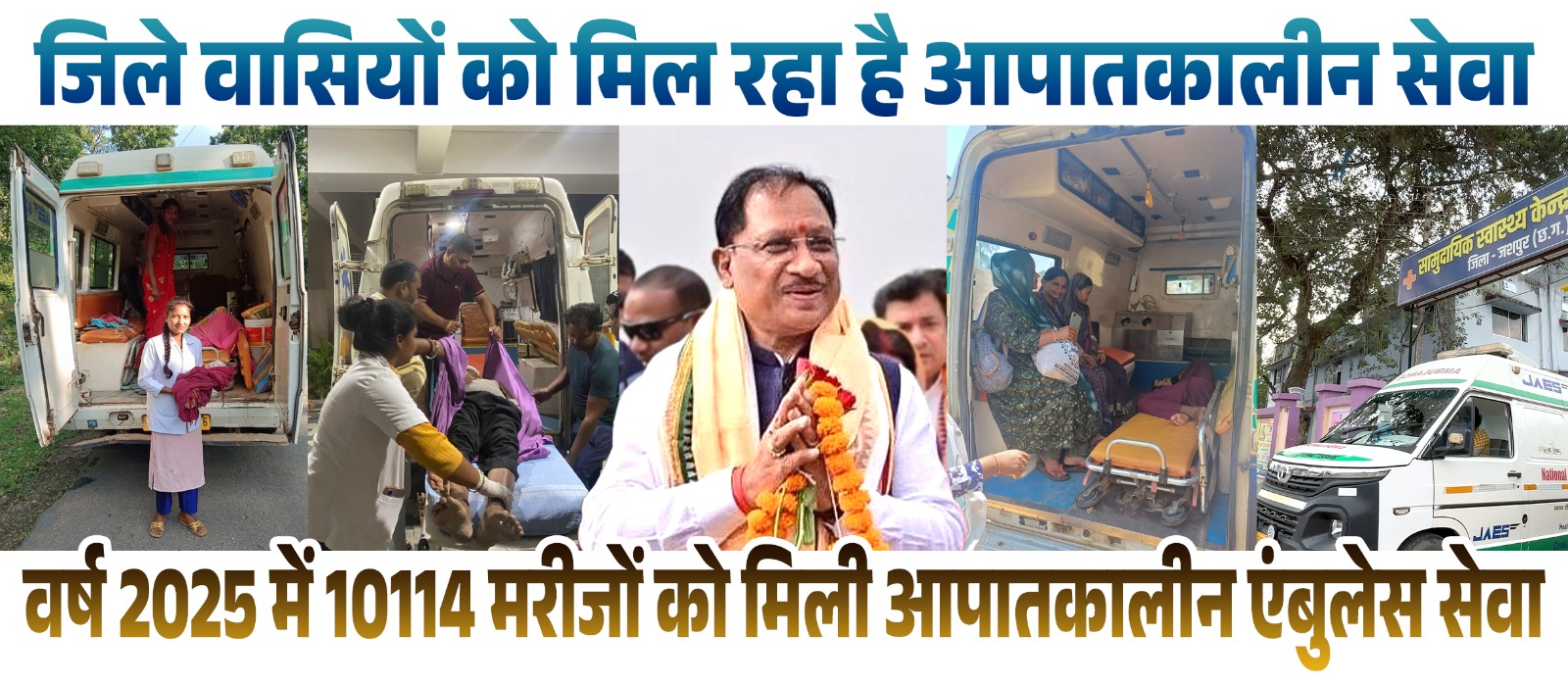 मुख्यमंत्री श्री विष्णुदेव साय के गृह जिले में बढ़ती स्वास्थ्य सुविधाएं से मिल रही है लोगों को लाभ, डायल 108 संजीवनी एक्सप्रेस बनी जिले की जीवन रेखा..